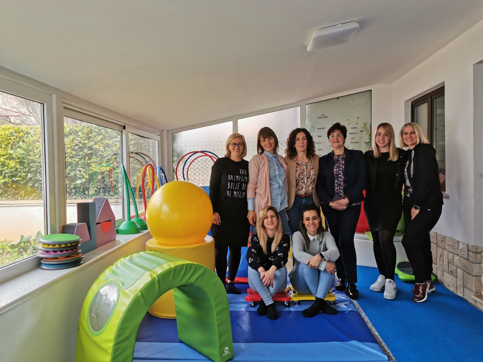 Pula, travanj 2022.Zahvaljujući iznimnoj vjeri, trudu i kontinuiranom ulaganju u rast i razvoj u provedbi posebnog programa Senzorne integracije za djecu s teškoćama u razvoju, ravnateljica Dječjeg vrtića Titti, Sabina Vidos Vitasović i ove je godine realizacijom projekta Svjetlucavim svijetom u preokret 2, prepoznala potrebu za nastavkom unapređenja stručnog rada svojih djelatnika za Senzornu integraciju, a koji rade s djecom s teškoćama u razvoju. Tako smo prof. dr.sc. Rea Fulgosi Masnjak i doc.dr.sc. Dragana Mamić za ravnateljicu, odgojiteljice i edukacijsku rehabilitatoricu održale dvodnevnu edukaciju, stručno praćenje, podršku i osnaživanje u provedbi poticanja senzorne integracije kod djece s teškoćama u razvoju uključene u vrtić. U SI ozračju profesionalnog pristupa, ustrajnošću i plemenitošću, djelatnice su nas dočekale s pripremljenim bilješkama i olovkom iščekujući odgovore na sva ona pitanja, dvojbe, prijedloge koja se otvaraju kada jednom krenete putem poticanja razvoja senzorne integracije kod djece. Posebno nam je bilo značajno čuti i osvjedočiti se o postignućima koja su se dogodila usprkos Covid-19 situaciji. Tu su nova dodatno uređena poticajna okruženja, promjene u strukturi i „krojenju“ već postojećih dijelova prostora, novi kutci, nove staze i nova po mjeri odabrana oprema koja već sada još kvalitetnije udovoljava senzornim potrebama djece. Vjerujemo da smo i ovaj puta bile vaš „vjetar u leđa“, da smo vas uspjele osnažiti, poduprijeti i usmjeriti na promišljanja o budućem razvoju, daljnjem stručnom praćenju i bogaćenju programa Senzorne integracije u ranom predškolskom odgoju i obrazovanju djece, osobito one s teškoćama. Dobro je biti dijete u Tittiju, dobro je biti odgojitelj, i dobro je biti onaj koji stručno podupire. Ponosni jedni na druge već iščekujemo sljedeći susret! „ doc.dr.sc. Dragana Mamić